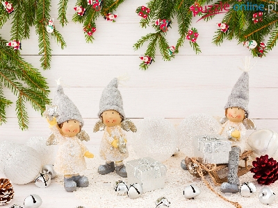 Aniołki, Gałązki, Świąteczna, Kompozycja, Prezenty