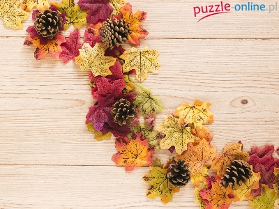 Puzzle Liście, Jesienne, Kolorowe, Szyszki