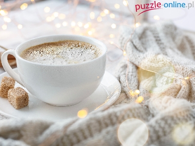 Kawa, Lampki, Spodek, Dwie, Cukru, Filiżanka, Kostki, Sweter