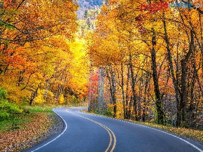 Drzewa, Zakręt, Droga, Jesień