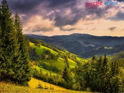 Puzzle Lasy, Góry, Drzewa, Dolina