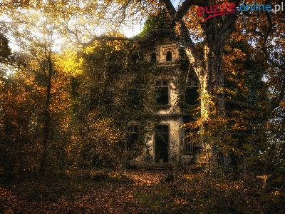 Drzewa, Dom, Jesień, Las, Opuszczony