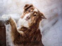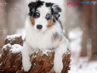 Puzzle Pień, Pies, Owczarek australijski, Śnieg