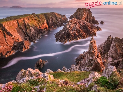 Roślinność, Skały, Irlandia, Morze, Wschód słońca, Hrabstwo Donegal