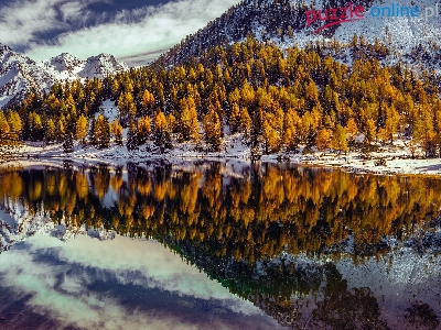 Styria, Odbicie, Las, Ośnieżone, Jezioro Duisitzkarsee, Austria, Góry Alpy, Drzewa