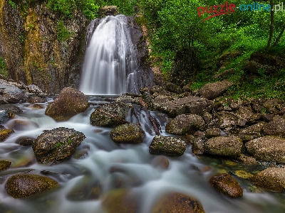 Kamienie, Wodospad, Drzewa, Skały, Rzeka, Zielone