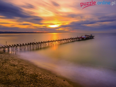 Plaża, Chmury, Morze, Molo, Zachód słońca