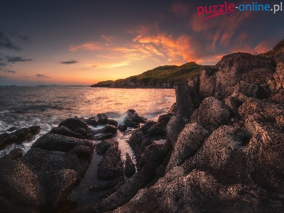 Puzzle Wybrzeże, Morze, Wschód słońca, Skały