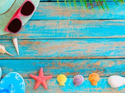 Okulary, Lato, Deski, Klapki, Rozgwiazda, Kapelusz, Muszelki, Wakacje