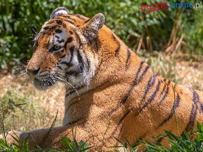 Puzzle Trawa, Leżący, Tygrys, Rośliny