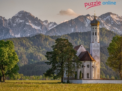 Alpy, Region Allgau, Niemcy, Drzewa, Góry, Kościół Eglise Saint Coloman, Bawaria