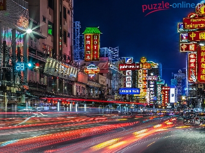 Tajlandia, Noc, Reklamy, Domy, Bangkok, Ulica, Światła