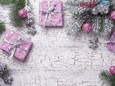 Gałązki, Boże Narodzenie, Bombki, Prezenty, Drewno, Różowe, Kompozycja, Srebrne, Popękane
