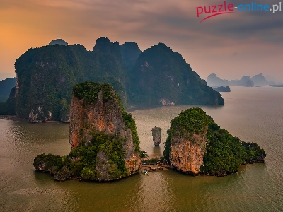Skały, Zatoka Phang Nga, Tajlandia, Lasy, Góry, Wyspy, Morze Andamańskie