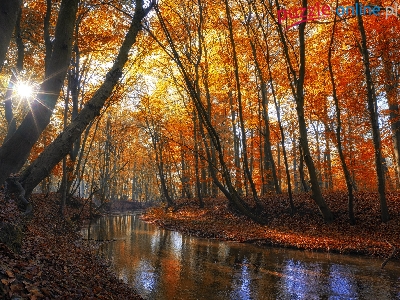 Drzewa, Promienie słońca, Jesień, Poranek, Rzeka, Las