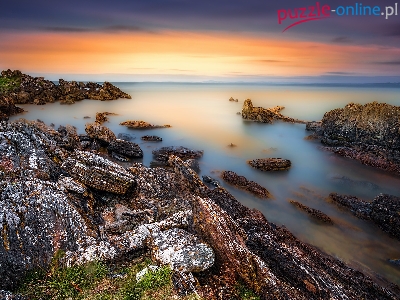 Skały, Morze, Irlandia, Zachód słońca, Wybrzeże, Hrabstwo Donegal