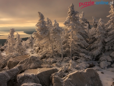 Puzzle Drzewa, Zima, Ośnieżone, Kamienie