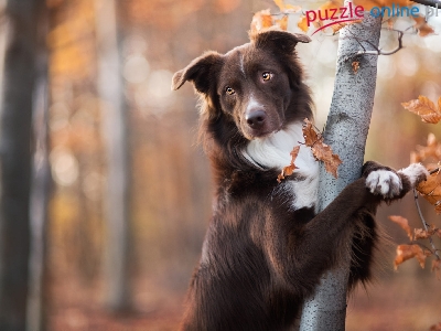 Puzzle Border collie, Brązowy, Pies, Drzewo