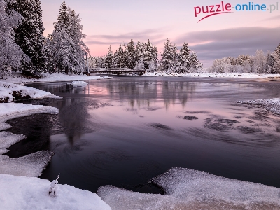 Ośnieżone, Rzeka Oulujoki, Finlandia, Most, Zima, Drzewa, Oulu