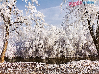 Oszronione, Szron, Zima, Rzeka, Drzewa