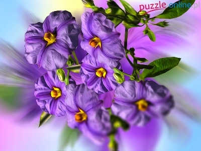 Puzzle Listki, Fioletowe, Kwiaty, Grafika