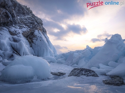 Jezioro Bajkał, Lód, Rosja, Zima, Skała, Wyspa Elenka