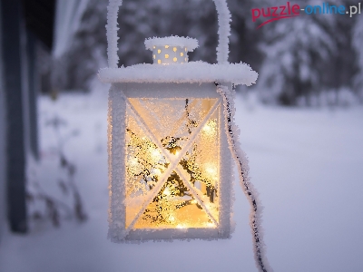 Puzzle Śnieg, Lampion, Rozświetlony, Szron