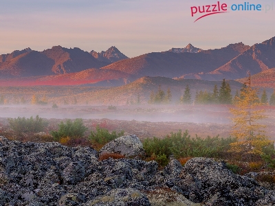 Drzewa, Kamienie, Góry, Mgła, Rośliny