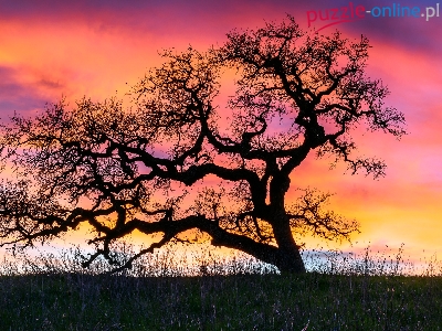 Puzzle Drzewo, Bezlistne, Zachód słońca