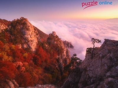 Morze, Masyw Demerdżi, Sosna, Skały, Krym, Drzewa, Góry Krymskie, Jesienne, Chmury