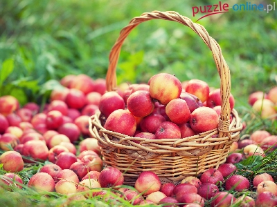 Puzzle Koszyk, Czerwone, Jabłka, Trawa