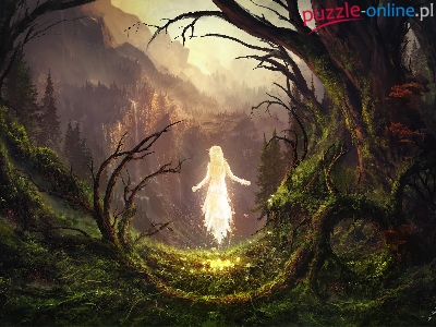 Drzewa, Dziewczyna, Fantasy, Las, Góry