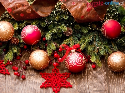 Świerkowe, Dekoracja, Gwiazdki, Świąteczna, Gałązki, Bombki