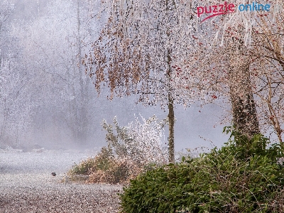 Oszronione, Mgła, Trawy, Park, Przymrozek, Drzewa