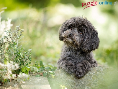Puzzle Rośliny, Pies, Pudel toy, Kamień