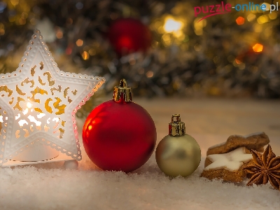 Świecznik, Kompozycja, Anyż gwiaździsty, Gwiazdka, Pierniczki, Boże Narodzenie, Bombki, Cynamon