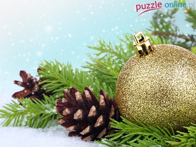 Puzzle Szyszki, Złota, Bombka, Boże Narodzenie