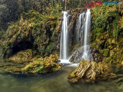 Skały, Rośliny, Wodospad, Rzeka, Zielone