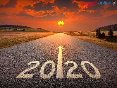 Chmury, Nowy Rok, Cyfry, Droga, Zachód słońca, Drzewa, 2020