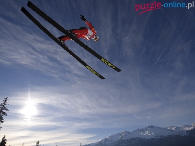 Niebo, Drzewa, Skoki narciarskie, Skoczek, Góry