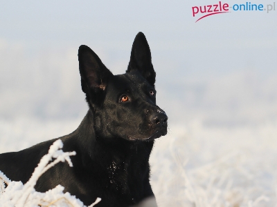 Puzzle Czarny owczarek niemiecki, Pies, Śnieg