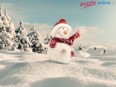 Puzzle Bałwanek, Zima, Śnieg, Choinki