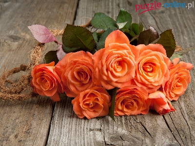 Puzzle Róże, Pomarańczowe, Deski