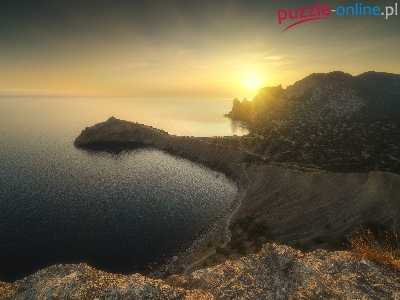 Półwysep, Wschód słońca, Morze, Wybrzeże, Skały