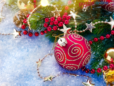 Łańcuchy, Dekoracja, Świerkowe, Świąteczna, Bombki, Gałązki