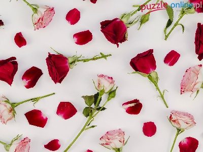 Różowe, Płatki, Tło, Róże, Czerwone, Pąki, Białe