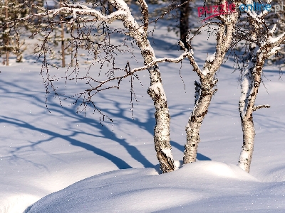 Drzewa, Śnieg, Cień, Zima, Zaspy, Brzozy
