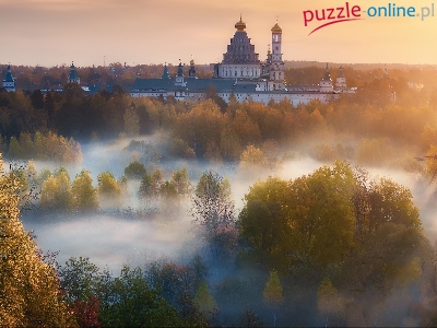 Wiatrak, Monaster Zmartwychwstania Pańskiego, Obwód moskiewski, Cerkiew, Rosja, Lasy, Mgła, Jesień, Nowe Jeruzalem, Istra