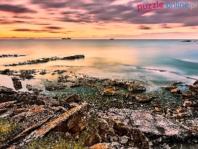 Wschód słońca, Włochy, Antignano, Skały, Wybrzeże, Morze, Kamienie, Livorno