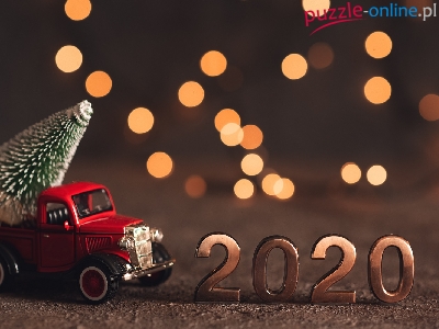 Cyfry, Samochód, Bokeh, Czerwony, Nowy Rok, 2020, Choinka